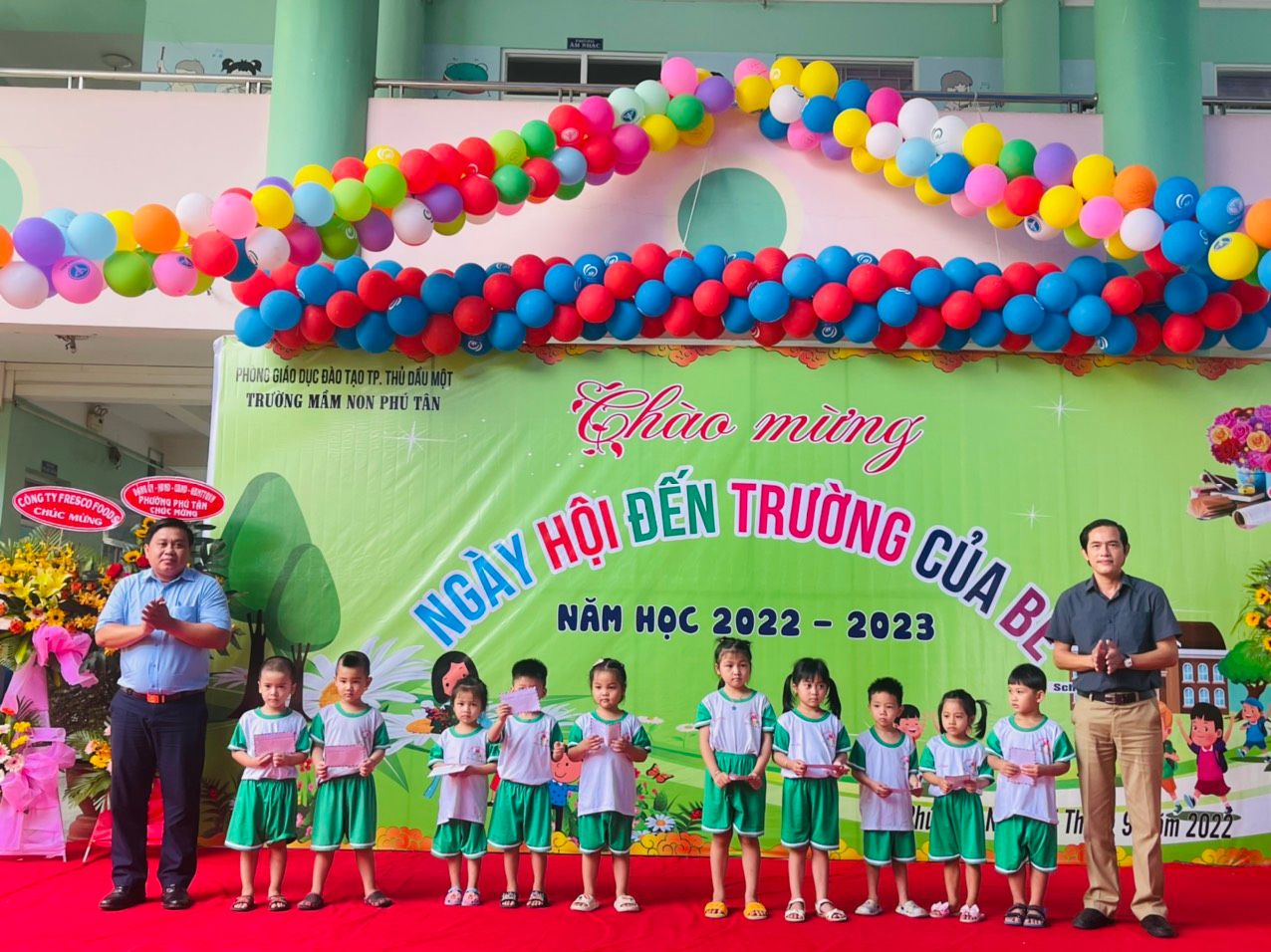 Hòa chung không khí cả nước tưng bừng chào đón năm học mới, Sáng ngày 05/9/2022, Trường mầm non Phú Tân long trọng tổ chức “Ngày Hội đến trường của bé”, đến dự lễ khai giảng về lãnh đạo thành phố có đồng chí Lộc Trung Nghĩa - Trưởng phòng Nội vụ Thành phố Thủ Dầu Một; về lãnh đạo địa phường có đồng chí Nguyễn Minh Quang - Phó Chủ tịch HĐND phường; đồng chí Thái Văn Chót - Phó Chủ tịch UBND phường; đồng chí Nguyễn Thị Tường An - Chủ tịch UBMTTQVN phường cùng các ngành đoàn thể phường và cùng toàn thể Cán bộ, giáo viên, nhân viên nhà trường; Ban đại diện hội Cha mẹ học sinh; Các mạnh thường quân. Và đặc biệt là sự có mặt của hơn 300 gương mặt hồn nhiên, xinh tươi của các bé học sinh của trường. Nhân dịp khai giảng năm học mới lãnh đạo thành phố và địa phương cũng có lẵng hoa tươi thắm tặng chúc mừng trường.